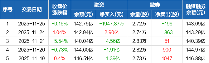 寒武纪:融资净偿还1947.87万元,融资余额142.75亿元(11-25)