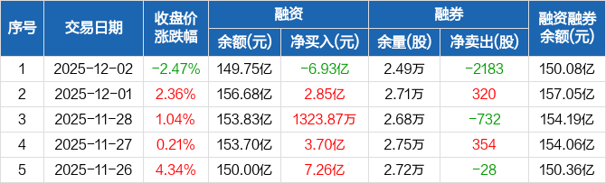 寒武纪:融资净偿还6.93亿元,两市排名第一(12-02)