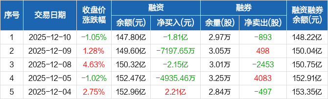 寒武纪:融资净偿还1.81亿元,两市排名第五(12-10)
