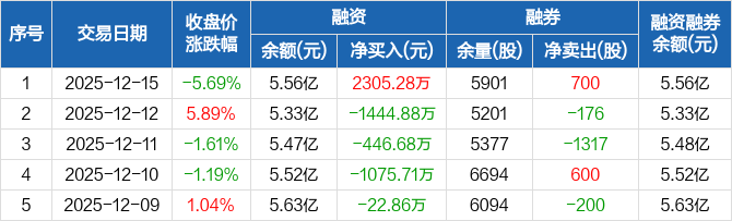 东微半导:融资净买入2305.28万元,融资余额5.56亿元(12-15)