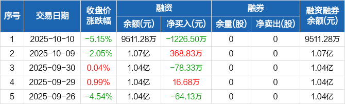 南模生物:融资净偿还1226.5万元,融资余额9511.28万元(10-10)