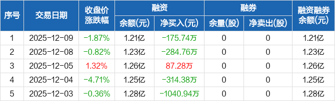 中触媒:融资净偿还175.74万元,融资余额1.21亿元(12-09)