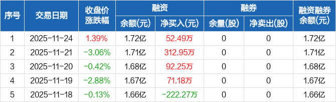 凯立新材:融资余额1.72亿元,创近一年新高(11-24)