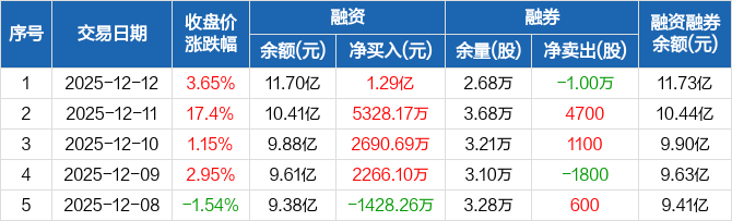 臻镭科技:融资余额11.7亿元,创历史新高(12-12)