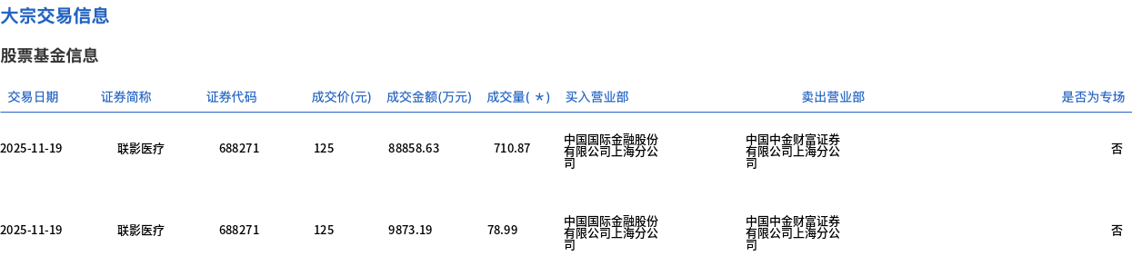 联影医疗今日大宗交易折价成交789.86万股,成交额9.87亿元