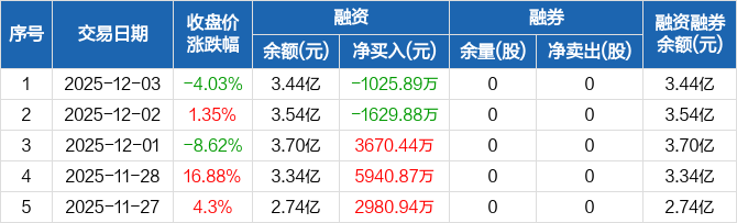 万润新能:融资净偿还1025.89万元,融资余额3.44亿元(12-03)