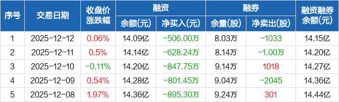 特宝生物:连续5日融资净偿还累计3678.74万元(12-12)