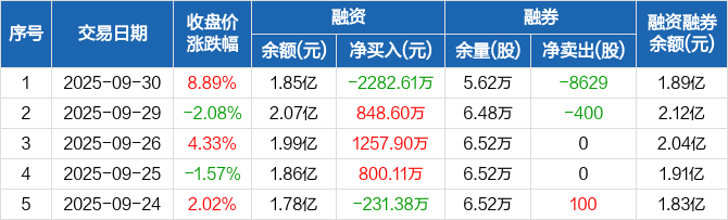 华秦科技:融资净偿还2282.61万元,创近一年新高(09-30)
