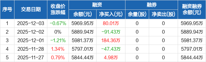 高铁电气:融资净买入80.01万元,融资余额5969.95万元(12-03)