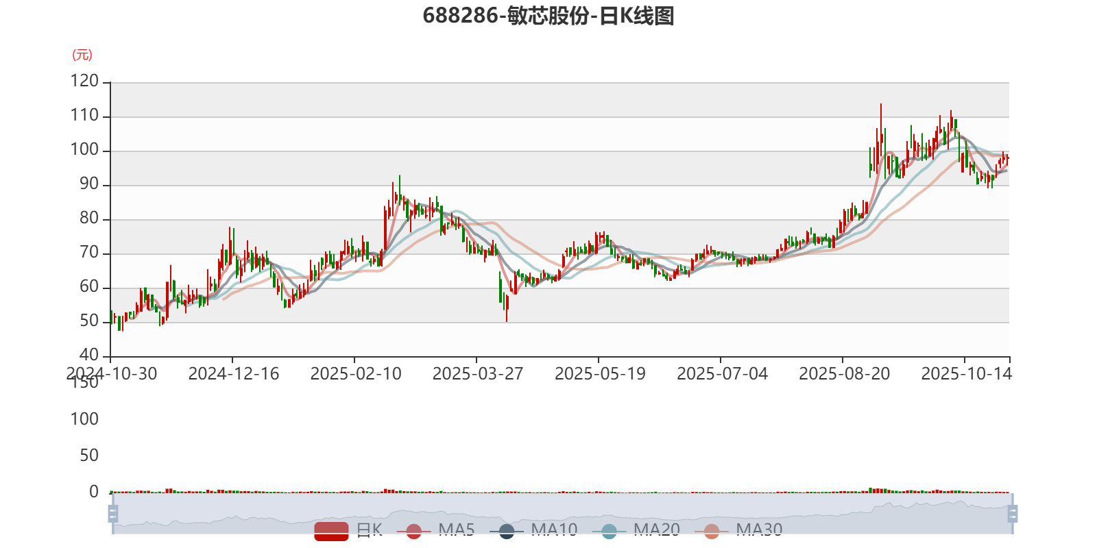 以10月29日收盘价计算,敏芯股份目前市盈率(TTM)约为111.11倍,市净率(LF)约5.13倍,市销率(TTM)约8.67倍。