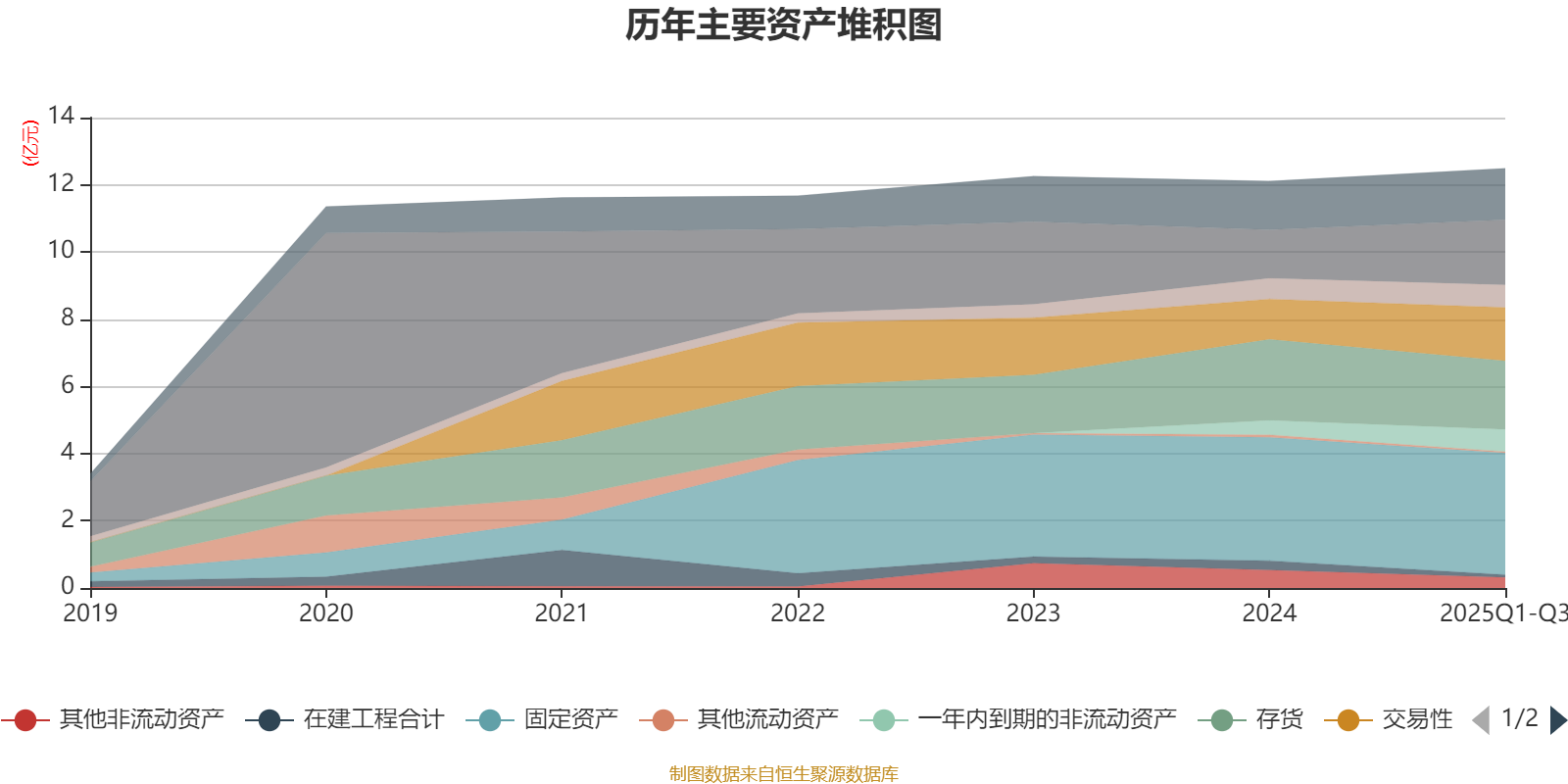 资产重大变化方面,截至2025年三季度末,公司存货较上年末减少15.45%,占公司总资产比重下降3.6个百分点;货币资金较上年末增加33.85%,占公司总资产比重上升3.55个百分点;交易性金融资产合计较上年末增加32.51%,占公司总资产比重上升2.82个百分点;其他非流动资产较上年末减少40.68%,占公司总资产比重下降1.87个百分点。