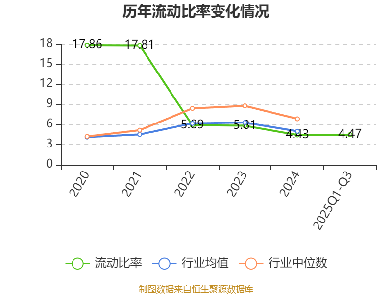 2025年前三季度,公司流动比率为4.47,速动比率为3.21。