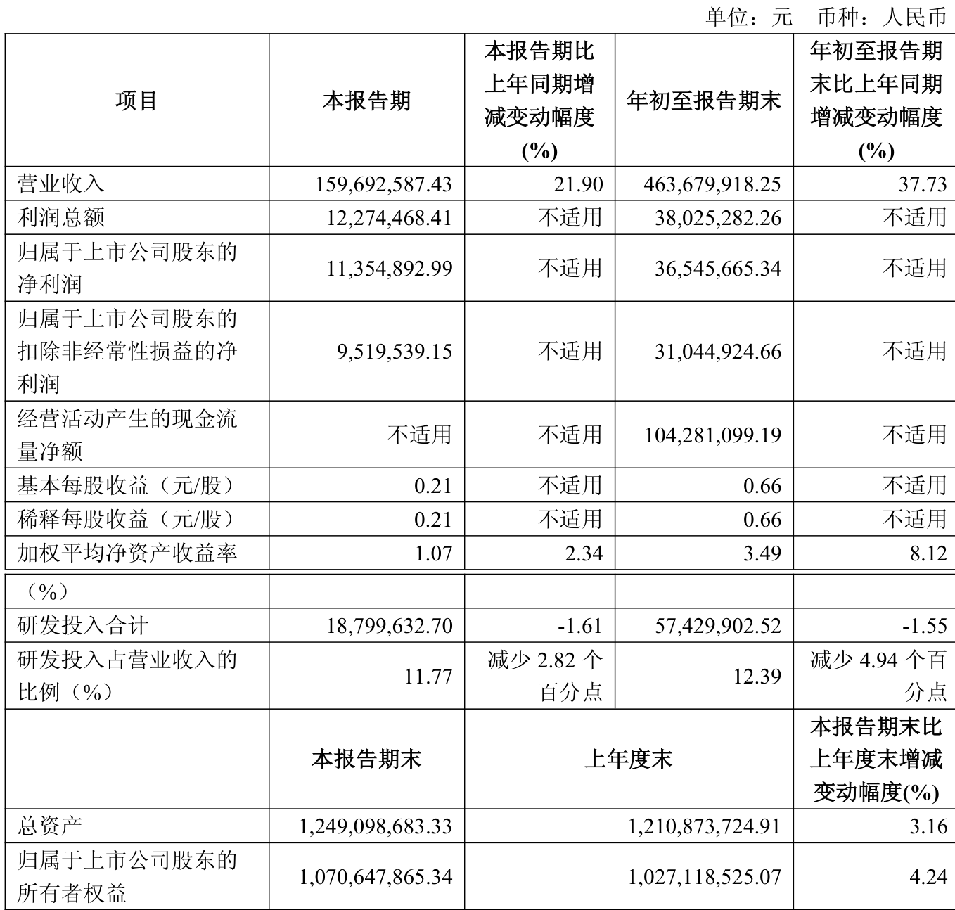 中证智能财讯敏芯股份(688286)10月30日披露2025年第三季度报告。前三季度公司实现营业总收入4.64亿元,同比增长37.73%;归母净利润3654.57万元,同比扭亏;扣非净利润3104.49万元,同比扭亏;经营活动产生的现金流量净额为1.04亿元,上年同期为-7420.2万元;报告期内,敏芯股份基本每股收益为0.66元,加权平均净资产收益率为3.49%。