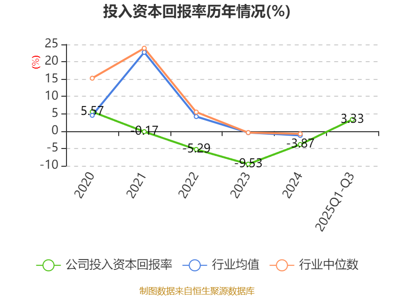 盈利能力方面, 2025年前三季度公司加权平均净资产收益率为3.49%,同比上升8.12个百分点。公司2025年前三季度投入资本回报率为3.33%,较上年同期上升8.38个百分点。