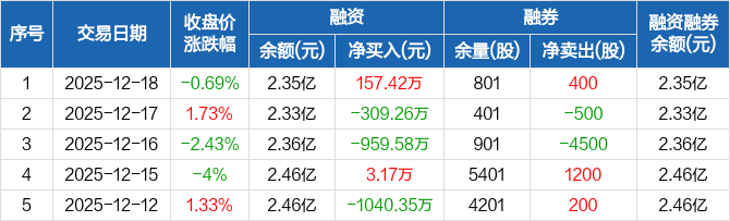 敏芯股份:融资净买入157.42万元,融资余额2.35亿元(12-18)