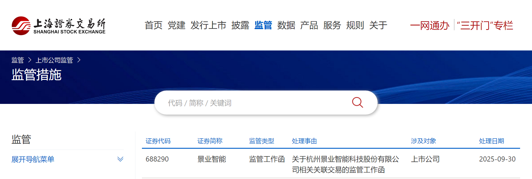 记者注意到,9月30日,上交所官网发布了《关于杭州景业智能科技股份有限公司现金收购合肥市盛文信息技术有限公司股权暨关联交易的监管工作函》,处理事由为关于杭州景业智能科技股份有限公司相关关联交易的监管工作函。