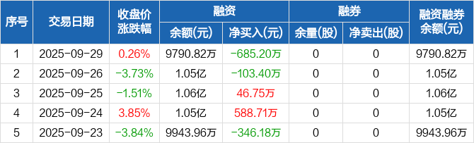 金橙子:融资净偿还685.2万元,融资余额9790.82万元(09-29)