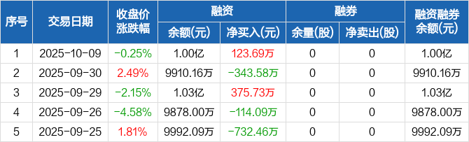 浩瀚深度:融资净买入123.69万元,融资余额1亿元(10-09)