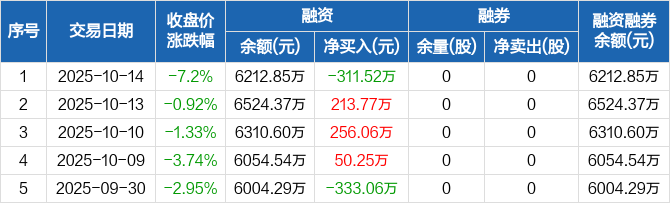 奥浦迈:融资净偿还311.52万元,融资余额6212.85万元(10-14)
