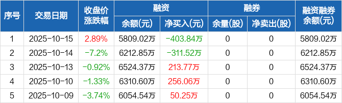 奥浦迈:融资净偿还403.84万元,融资余额5809.02万元(10-15)