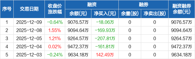 奥浦迈:连续4日融资净偿还累计557.61万元(12-09)