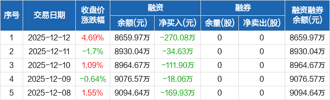 奥浦迈:连续7日融资净偿还累计974.21万元(12-12)
