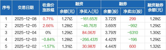 中复神鹰:融资净偿还161.65万元,融资余额1.27亿元(12-08)