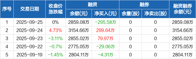 和达科技:融资净偿还295.58万元,融资余额2859.08万元(09-25)