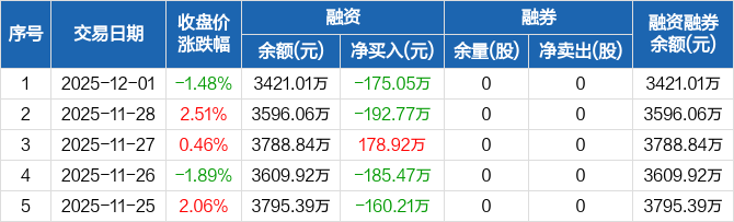 和达科技:融资净偿还175.05万元,融资余额3421.01万元(12-01)