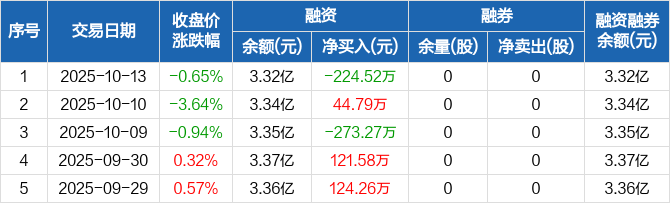 海创药业:融资净偿还224.52万元,融资余额3.32亿元(10-13)