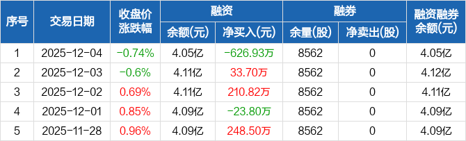 科德数控:融资净偿还626.93万元,融资余额4.05亿元(12-04)