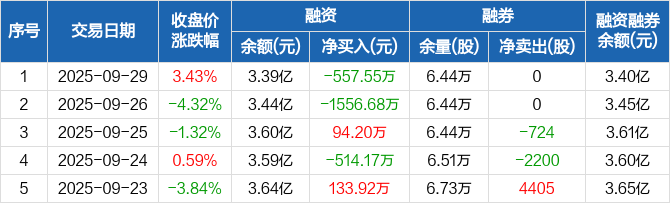 均普智能:融资净偿还557.55万元,融资余额3.39亿元(09-29)