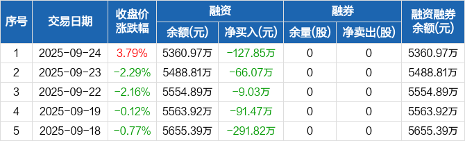 恒誉环保:连续5日融资净偿还累计586.25万元(09-24)