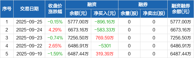 迈得医疗:融资净偿还896.16万元,融资余额5777万元(09-25)