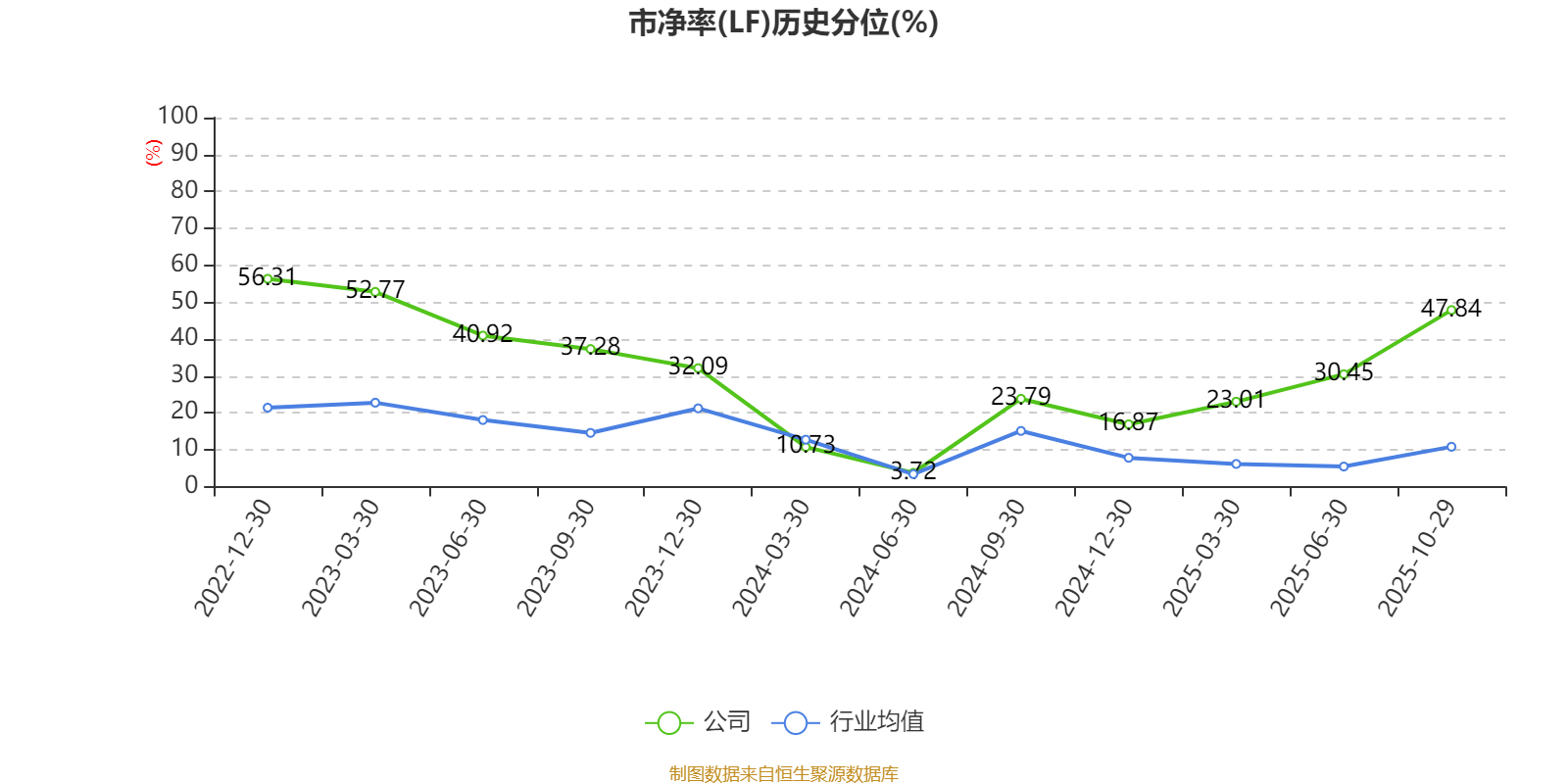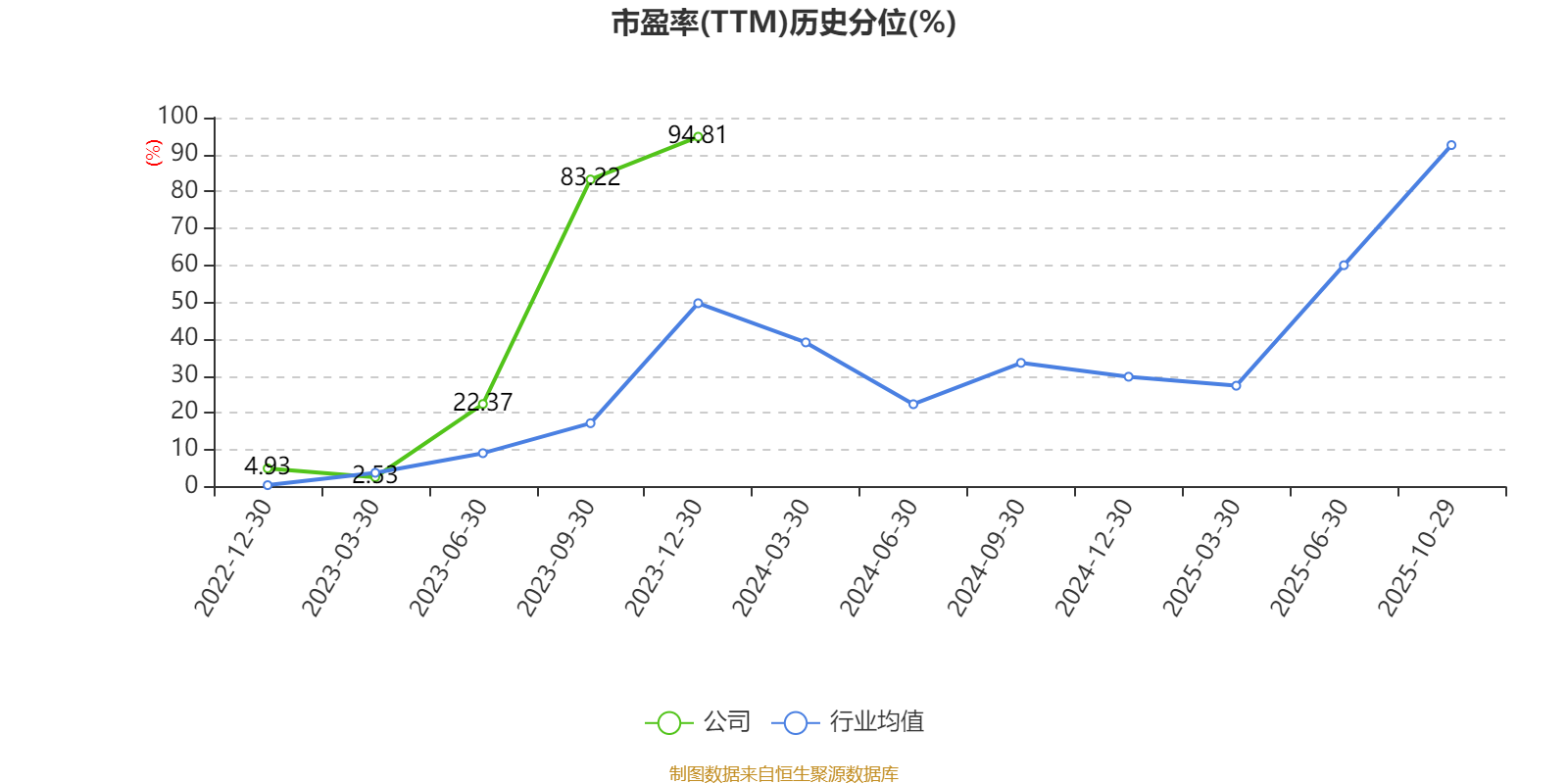市盈率、市净率为负时,不显示当期分位数,会导致折线图中断。