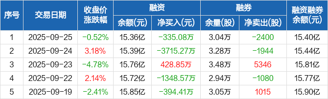 财富趋势:融资净偿还335.08万元,融资余额15.36亿元(09-25)