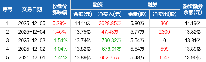 财富趋势:融资净买入3628.85万元,融资余额14.11亿元(12-05)