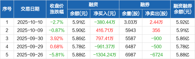 微芯生物:融资净偿还380.44万元,融资余额5.91亿元(10-10)