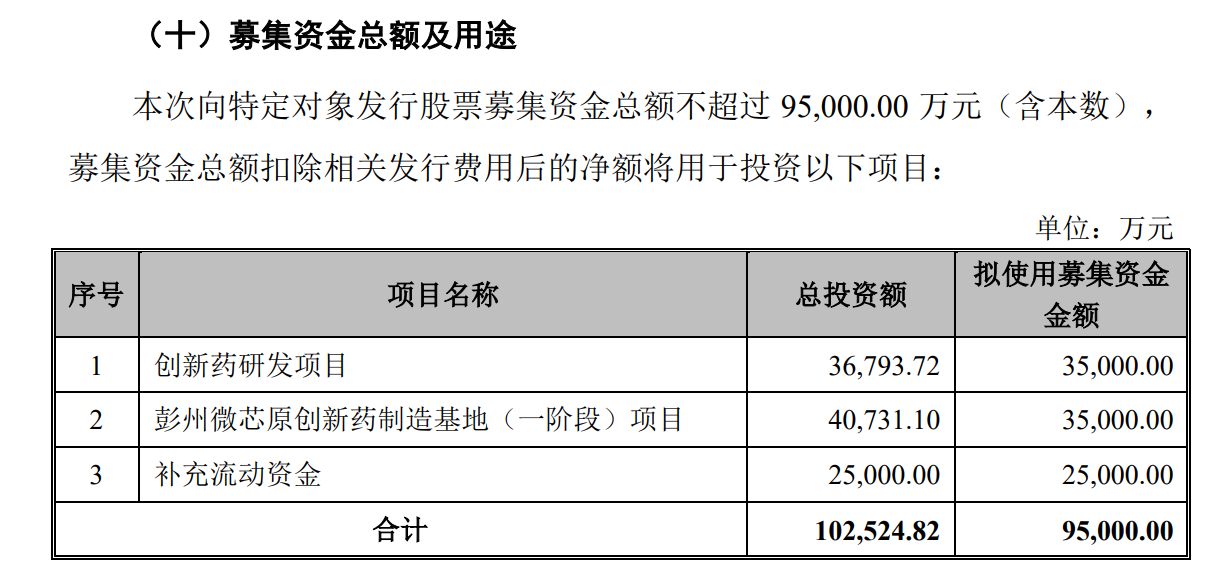 拟募资9.5亿元,投入创新药研发和制造基地建设