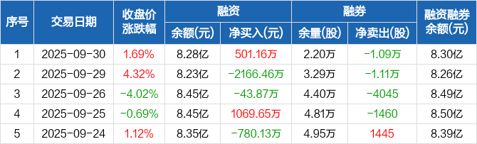 奥比中光:融资净买入501.16万元,融资余额8.28亿元(09-30)