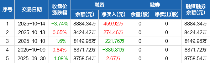 瑞华泰:融资净买入459.92万元,融资余额8884.34万元(10-14)