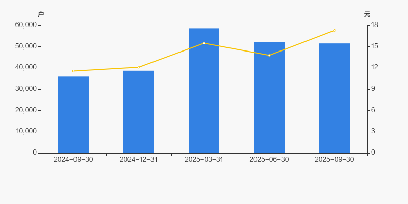2024年9月30日至今,公司股东户数显著增长,区间涨幅为42.59%。2024年9月30日至2025年9月30日区间股价上涨49.83%。