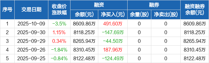 艾隆科技:融资净买入491.6万元,融资余额8609.86万元(10-09)
