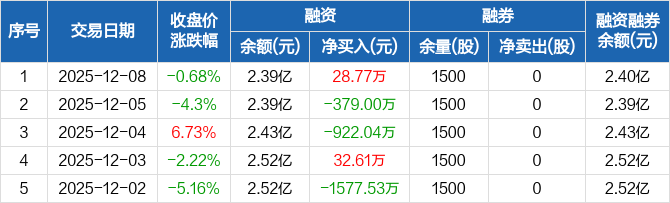 宏力达:融资净买入28.77万元,融资余额2.39亿元(12-08)