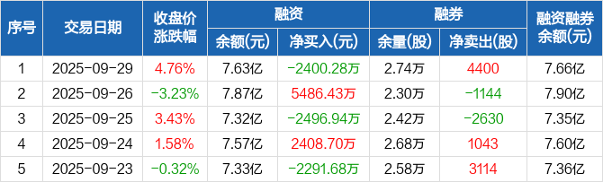 荣昌生物:融资净偿还2400.28万元,融资余额7.63亿元(09-29)