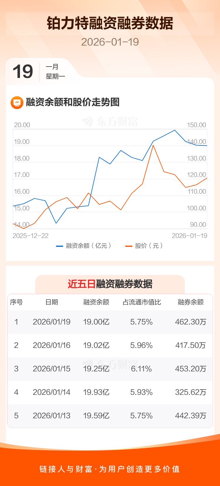 交易所最新数据显示,铂力特于2026年1月19日获融资买入2.07亿元,融资偿还2.09亿元,当日融资净偿还236.15万元。目前,该股融资余额19.00亿,占流通市值比例为5.75%。