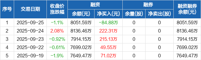 赛科希德:融资净偿还84.88万元,融资余额8051.59万元(09-25)