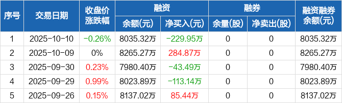 赛科希德:融资净偿还229.95万元,融资余额8035.32万元(10-10)