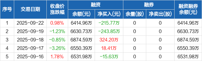 博力威:融资净偿还215.77万元,融资余额6414.96万元(09-22)