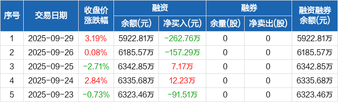 博力威:融资净偿还262.76万元,融资余额5922.81万元(09-29)